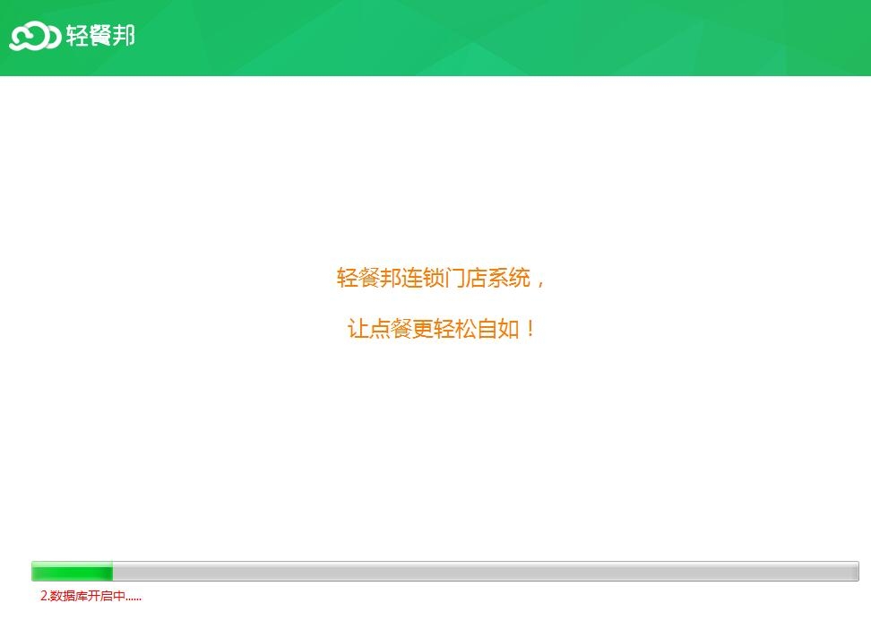 1、打开轻餐邦连锁门店系统提示数据库开启进度,等待数据库加载完毕就可以进入登录界面