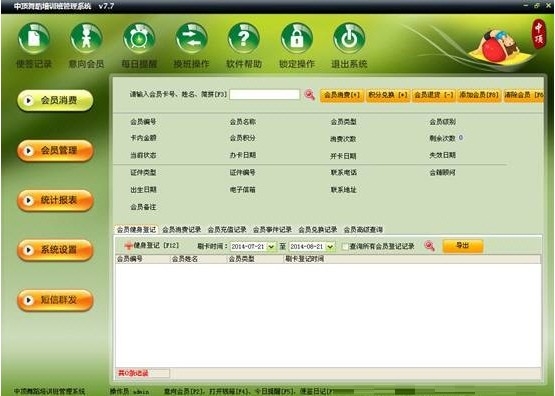 中顶舞蹈班管理系统最新版是一款非常实用的舞蹈班管理软件,中顶舞蹈班管理系统最新版非常适合各种舞蹈机构使用,界面美观,功能全面,为广大用户提供了会员消费,会员管理,统计报表,系统设置,短信群发等功能,通过中顶舞蹈班管理系统官方版可以更好的进行舞蹈机构的管理。