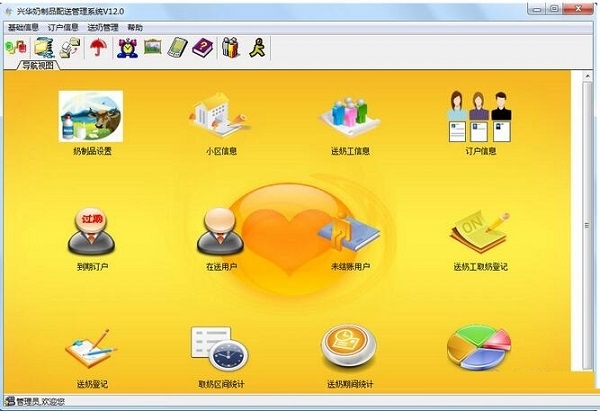 兴华奶制品配送软件最新版是一款奶制品配送管理软件。兴华奶制品配送软件最新版包含了奶制品设置、到期订户管理、送奶登记管理、在送用户管理、取奶区间统计、小区信息管理、送奶工信息管理、订户信息管理以及送奶期间统计等主要功能模块。兴华奶制品配送软件可以随时备份系统中的重要数据。