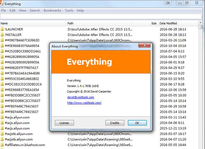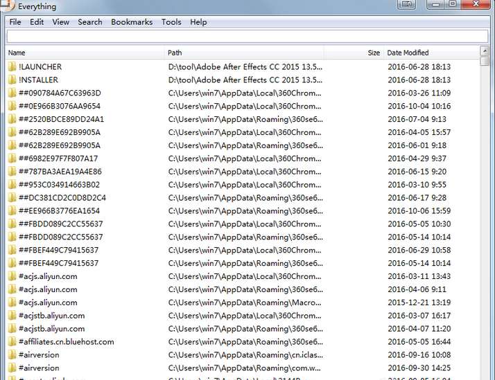 Everything是一款文件、文件夹名称快速搜索软件。在搜索之前就会把所用的文件和文件夹都列出来,这一点与Windows自带的搜索系统不一样,所以称之Everything。在搜索框输入文字,它就会只显示过滤后的文件和目录。