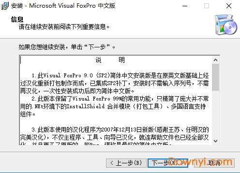 1 此visual foxpro 9.0 (sp2)简体中文安装版是在原英文版基础上经过汉化重新打包制作而成,已集成sp2补丁,安装时不需输入序列号,不需再汉化,一次性安装成功后即为简体中文版。
