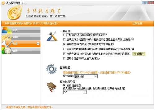 简单易用的电脑提速,系统提速软件,可提升系统速度10%~30%,让系统跑的更快。打开软件即自动给系统提速,无需任何设置操作即可开始给电脑提速,即使是电脑菜鸟,软件新手也能轻松使用软件。