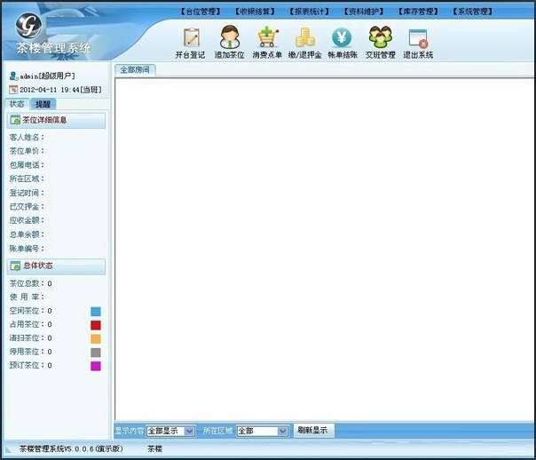 管家乐茶楼管理系统中文版是款用途十分广泛,拥有直观明了操作界面的茶楼管理工具,管家乐茶楼管理系统中文版主要适用于茶楼,茶艺茶社、茶馆咖啡厅,棋牌室等休闲娱乐会所,且管家乐茶楼管理系统集台位管理、收银结算、报表统计、资料维护、库存管理、系统管理为一体,更好的提升服务水平、增加企业效益。