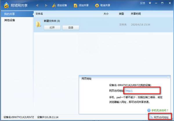 四、点击右下角的网页访问,这里可以用手机迅雷扫描二维码也能直接登录网页地址登录。