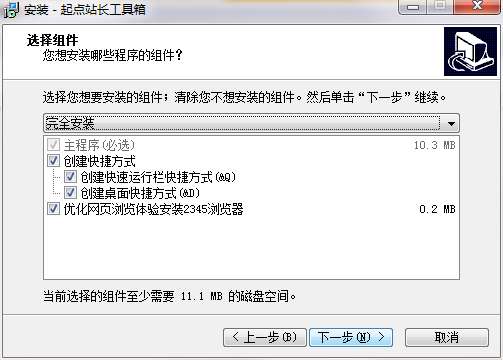 6.选择安装组件,点击下一步