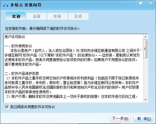 3.双击打开,进入软件安装界面,阅读安装许可协议,点击我同意,点击下一步