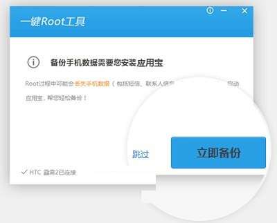 3.工具会自动识别您的手机并准备Root,备份完成后再点击“开始ROOT”。若已备份,请直接点击“跳过”开始Root。