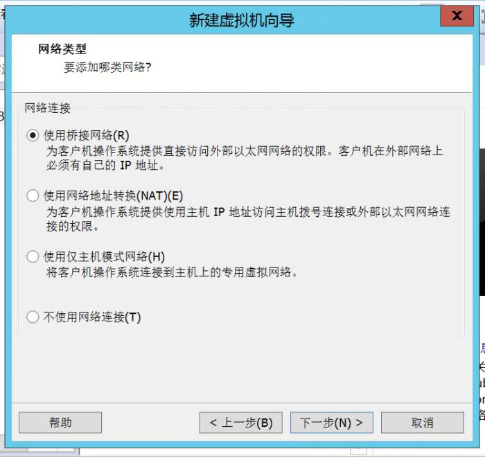 8、选择网络连接类型,这里选择“使用桥接网络”,