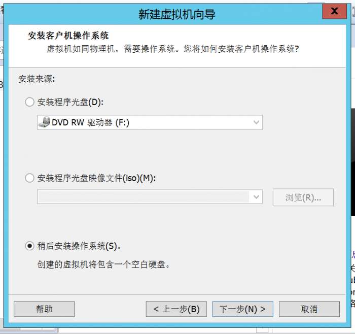 3、在出现下面界面,选中“稍后安装操作系统”选项,下一步继续: