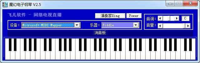 魔幻电子钢琴鼠标为指,软件为琴通过播放midi文件,并在虚拟键盘模拟钢琴弹奏,也能够通过虚拟键盘或者MIDI输入设备录制MIDI文件。只需要一个鼠标,通过你的敲击魔幻电子钢琴就能演奏出动人的音乐了,可切换吉他、小提琴、贝斯、鼓等乐器,魔幻电子钢琴是通过MDI进行输入和输入的。