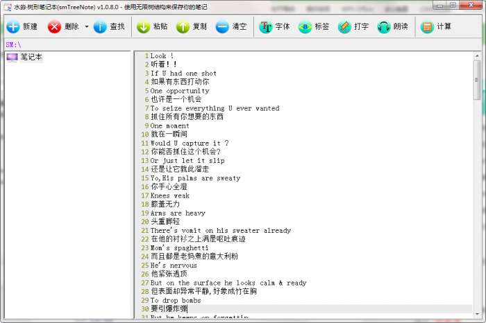 TreeNote(树形笔记本)官方版是一款可以对文字进行树形排列的工具。如果您有大量的文字数据等待排列处理,可以尝试使用TreeNote(树形笔记本)最新版,可以一键对所有文字数据进行编辑。TreeNote(树形笔记本)官方版导入时支持txt、htm文件扩展名,导出默认是txt。