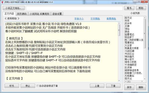 灵辰小说听书助手中文版是一款简单易用的小说阅读软件,灵辰小说听书助手官方版支持采集小说网站上的小说内容,让你可以随时查看自己喜欢的内容,并且支持语音阅读,灵辰小说听书助手中文版可以将小说转换为语音实时播放,可以自定义语音速度,还可以将这些语音保存。