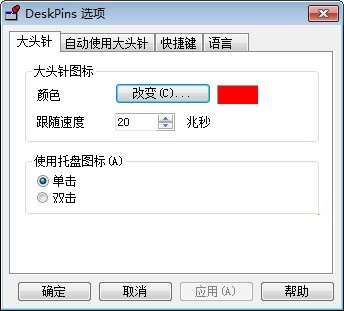 DeskPins是一款常用软件。可以将你常用的窗口定在桌面前端,就像大头针一样,只需要点击DeskPins大头针图标,然后点击任何一个窗口,DeskPins就可以将任何应用窗口保持在其它窗口最顶层! 此功能类似于视频软件的“始终保持在最前”的功能,但是使用DeskPins您可以将此功能应用到任何应用程序!它支持全局自定义热键,支持钉住多个窗口!DeskPins 文件极小、占用的系统资源可以忽略不计!当你同时打开多个窗口时,DeskPins就显得非常有用!你可以同时钉住两个窗口,即使用你后台打开多少个窗口,你也可以方便的在你钉住的这两个窗口间来回切换!