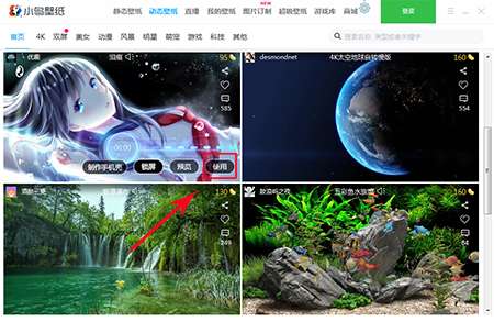 2.点击“使用”即可(登录账号才可以使用动态壁纸)