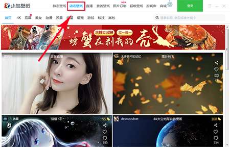 1.进入360小鸟壁纸界面,在“动态壁纸”专栏中,可根据分类找到自己喜欢的动态壁纸
