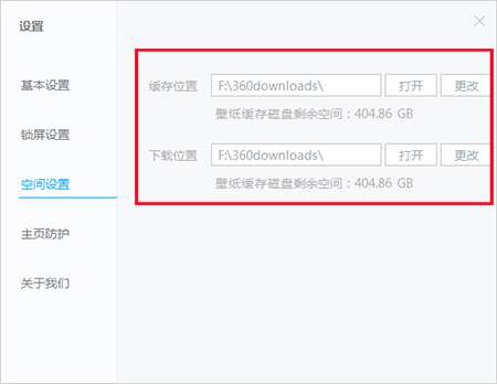 点击页面右上角设置图标,选择“软件设置”,在“空间设置”里可自定义更改下载壁纸文件位置