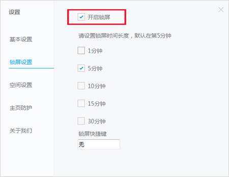 点击页面右上角设置图标,选择“软件设置-锁屏设置”,勾去“开启锁屏”即可