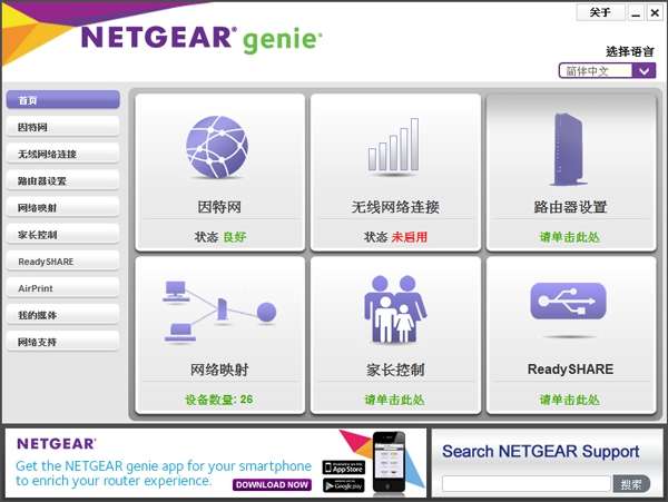 网件Genie网络管理工具是一款专业的家庭网络管理工具软件。该软件界面简单,操作简单,无经验即可使用,适用于管理、检测和修复用户的家庭网络,非常方便。使用netgear,可以简单地管理、监视和修复你的家庭网络。例如,家庭控制、访问者网络、无线频道速度测试等,用户可以简单地控制自己的网络,可以解决不少麻烦。