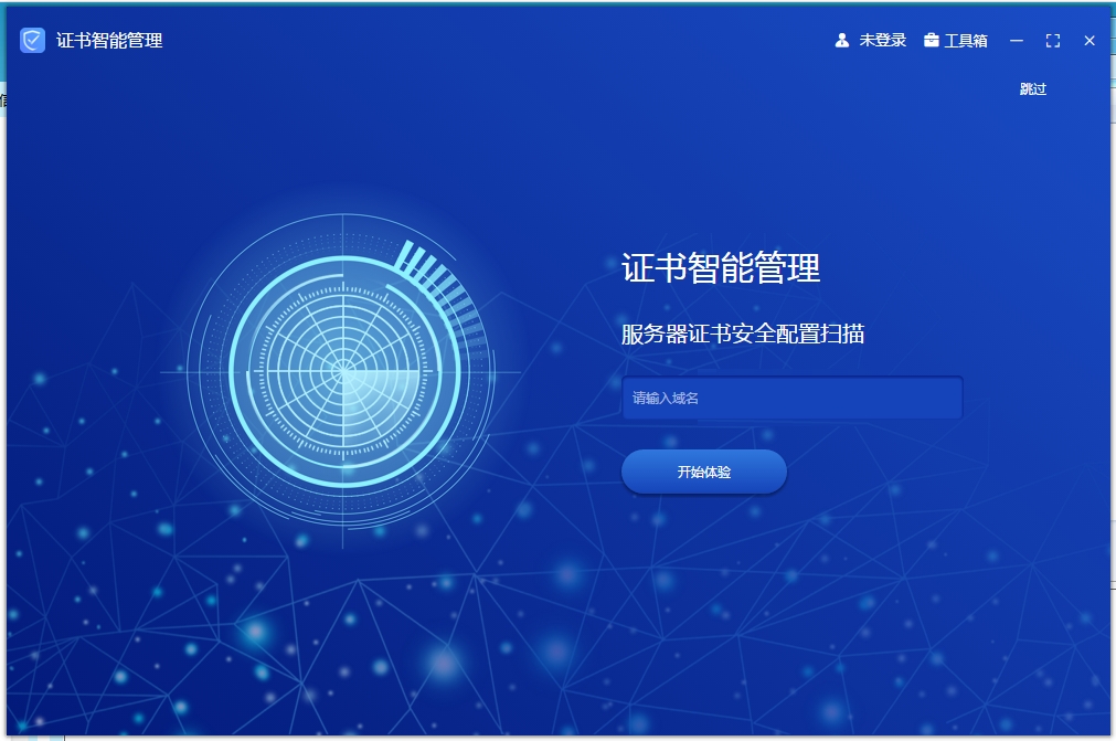 1、打开CIM证书智能管理系统,提示输入域名分析证书,您也可以直接跳过扫描
