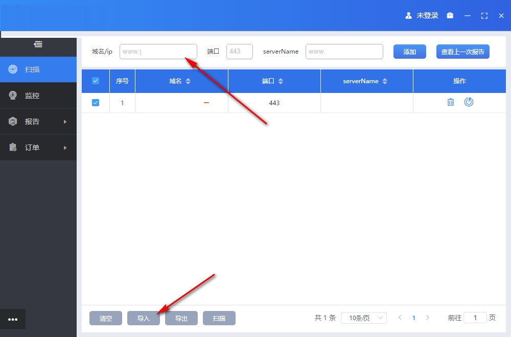 支持域名、IP和IP地址段的自定义端口的扫描;并即时生成扫描报告。