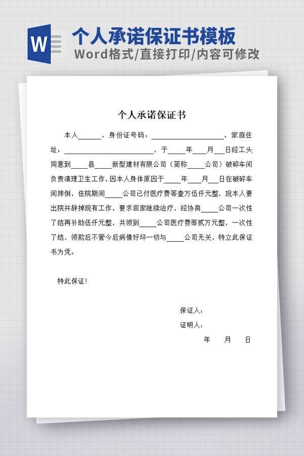 个人承诺保证书模板是为了