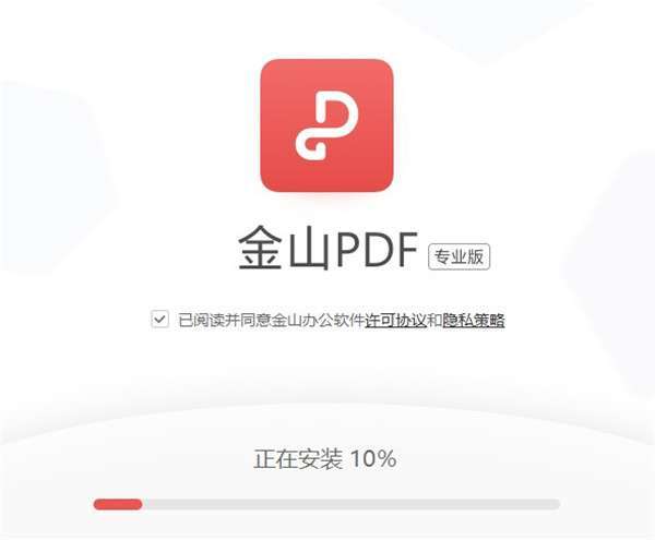3.金山PDF专业版软件正在安装,请耐心等待安装完成即可