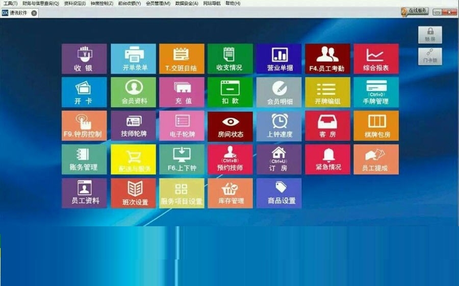 2、进入德讯足浴管理系统主界面,界面非常的简洁明了。
