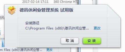 2、选择安装位置,默认为"C:Program Files (x86)德讯休闲业管理系统,若您需要安装到其他文件夹,单击“更改”。