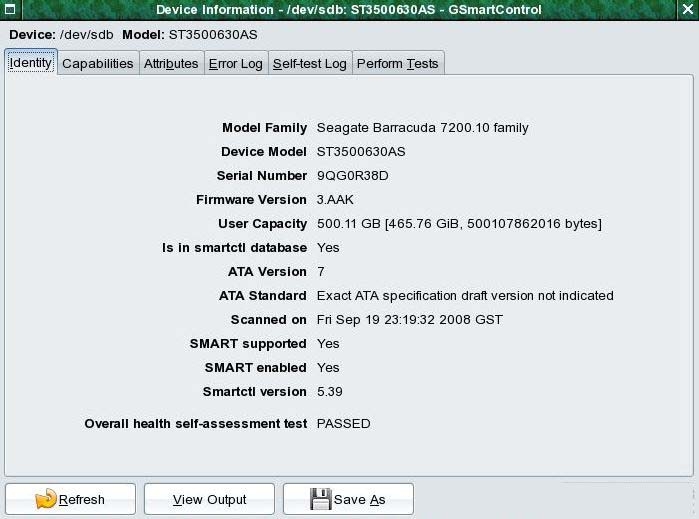 一旦启动和运行,只需双击任何列出的硬盘驱动器,以打开驱动器的设备信息窗口。PATA和SATA驱动被支持,以及一些USB到ATA桥和一些RAID连接驱动器。一个单独的标签包含不同的信息和功能的硬盘驱动器。