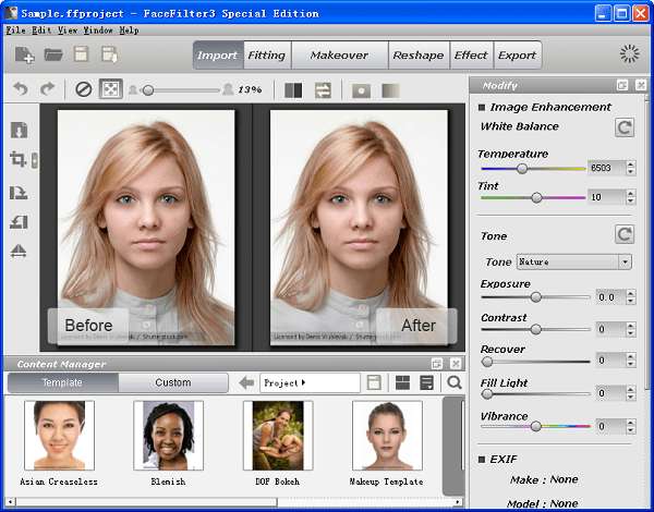 facefilter3由reallusion inc出品的专业的照片美化软件,他被广大用户称为相片救星、整容专家,可见其功能之强大。使用facefilter,无需专业知识,只需要几分钟就能对图片中存在瑕疵进行休整,让照片更加美丽!