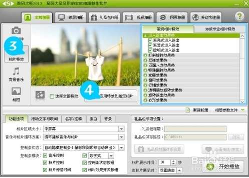 选择下图标签3-“相片特效”选项卡后,我们可以进行以下设置: