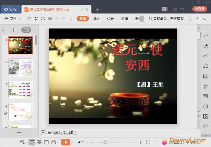 送元二使安西免费课件为学习提供了方便的学习内容,让学生们有一个良好的使用体验,让你在使用的时候可以更加放心的使用。如果你想学习其中的内容,欢迎来体验!