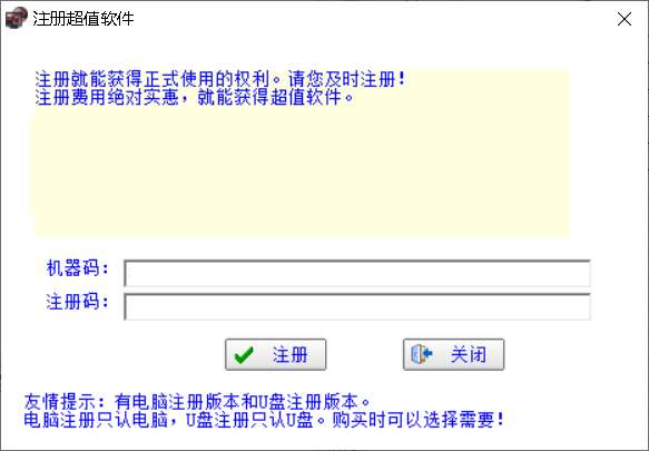2、双击该程序,可以进行注册,或者点击关闭进行试用