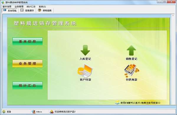 塑料膜进销存管理系统电脑版是款专门为了从事塑料膜生产企业研发设计的库存管理工具,塑料膜进销存管理系统电脑版拥有强大而又实用的功能,主要可以帮助企业更高效地管理仓库,塑料膜进销存管理系统还支持支持数据与Execel的导出与导入,界面设计的非常人性化。
