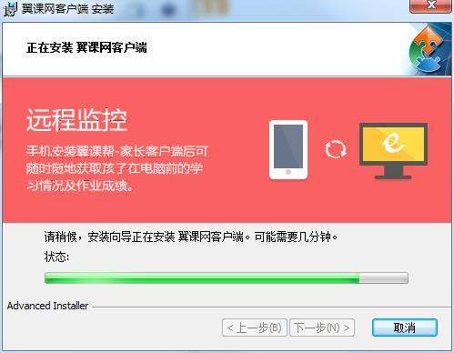 5.单击“安装”,翼课网安全书桌软件正在安装,请耐心等待