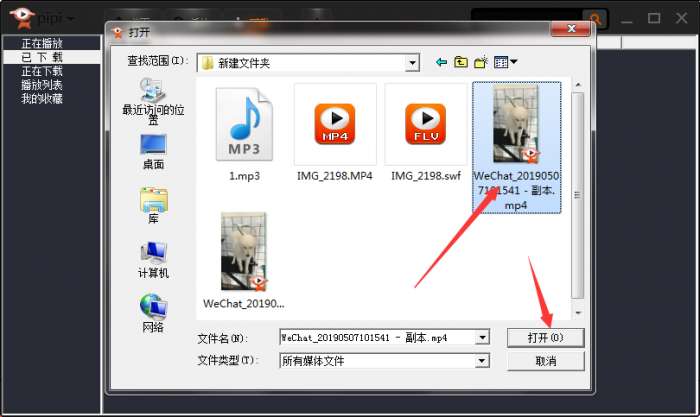 3、选中要播放的本地视频,点击打开