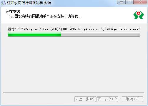 3、江西农商银行网银助手开始安装,我们耐心等待一下