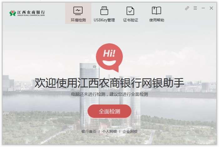 江西农商银行网银助手可以智能地帮助您检查网上银行运行环境,智能地生成本地环境检测报告提示您。并且提供方便的修复功能,最大程度地帮助您自主解决问题,提高了易用度和稳定性。
