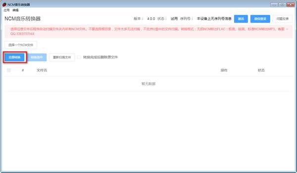 提供简单的转换方式,可以支持多个NCM文件转换为MP3。