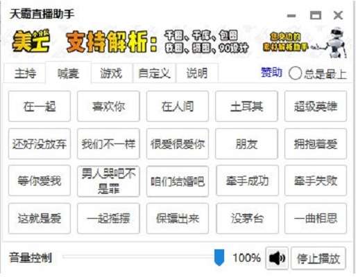 天霸直播助手是一款相当优秀的免费的主播音效工具,软件内置60多种音效,软件自带60组气氛音乐,还有20租音效供你自定义,声音使用萌妹子音效更是效果爆棚,专为主播们打造。