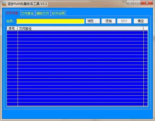 蓝梦RAR批量改名工具最新版是一款专业好用的批量改名工具,蓝梦RAR批量改名工具官方版能够批量修改RAR压缩包名称、批量删除RAR压缩包内指定文件,更改后的文件名以第一个设定的后缀文件名为主,蓝梦RAR批量改名工具最新版有文件列表、文件更名、删除文件、软件说明四大功能。