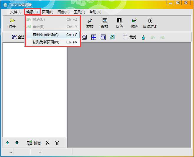 2、接下来我们点击界面上方的“编辑”选项,然后可以看到有撤销、重做、复制页面图像、粘贴为新页面选项,我们可以根据自己的需要来选择。