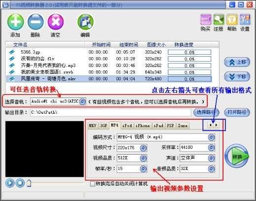(4) 对于多音轨视频,用户可以任意选择音轨转换;