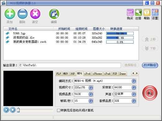 支持 常见国内3GP/MP4格式的山寨手机、MP4播放机、MP5等移动多媒体设备
