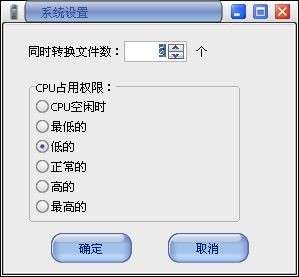 步骤6:点击软件窗口右上角的“设置”按钮,可以设置同时转换文件数量,软件采用国际最先进多媒体编解码技术,可以同时转换多个视频,用户可以根据您的电脑CPU能力来选择CPU占用权限,方便您同时处理多项事务;