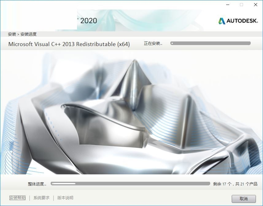 5、提示安装进度,软件需要安装21个项目,等待安装结束吧!