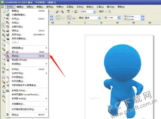 5.紧接着再点击主界面的【文件】,选择【导出】选项,将图形格式设置为JPG格式(导出参数值为默认),这样我们使用CorelDraw X4简体中文版软件将我们需要的图形扣出来了。