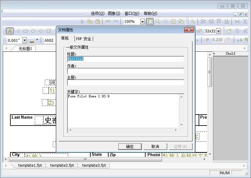 3、可以对文档属性进行快速的设置,包括了一般文档属性设置,关键字的设置、PDF安全设置等;