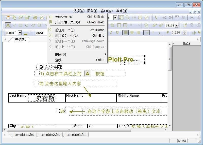 6、记录包括了新建记录、新建重复记录、前往第一个、删除、查找等;