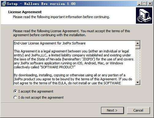 1、双击“Hallows_Eve_Setup.exe”出现协议,选择i accept
